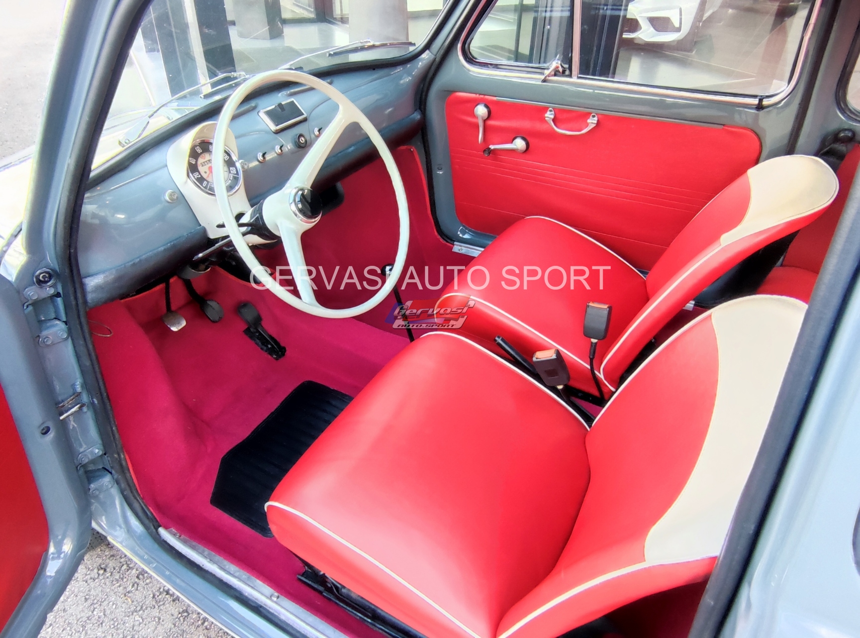 intérieur en simili rouge / moquette rouge